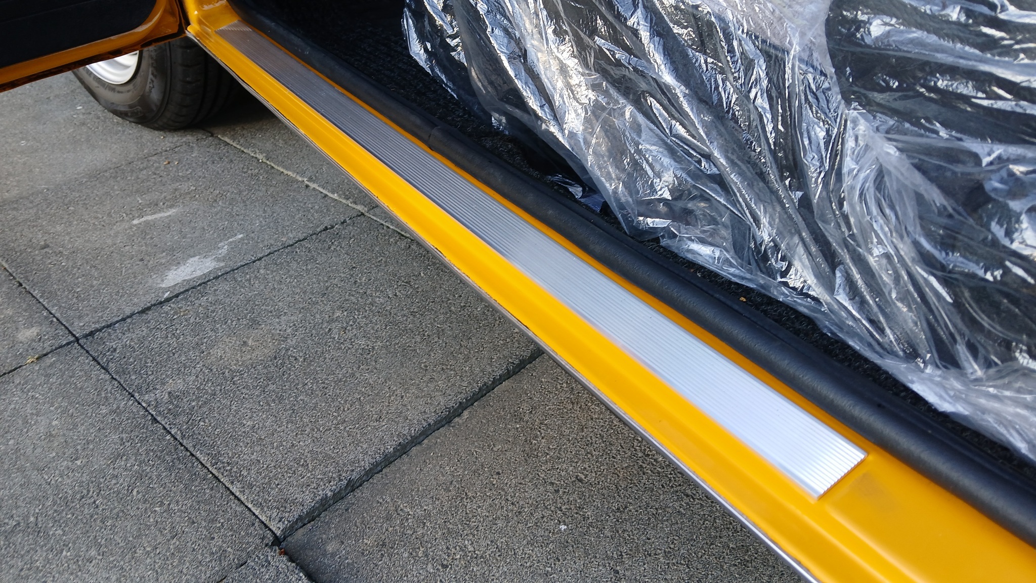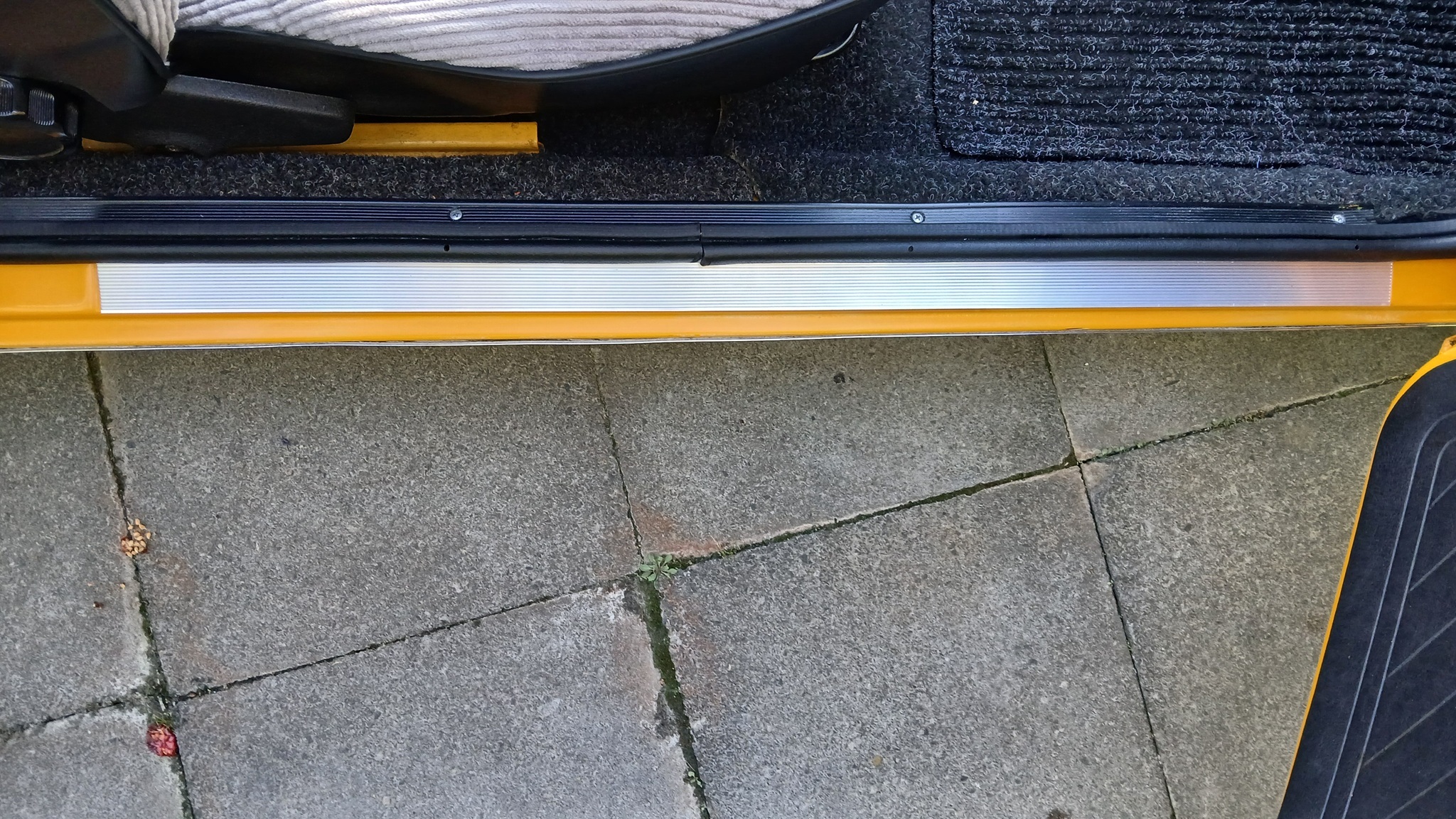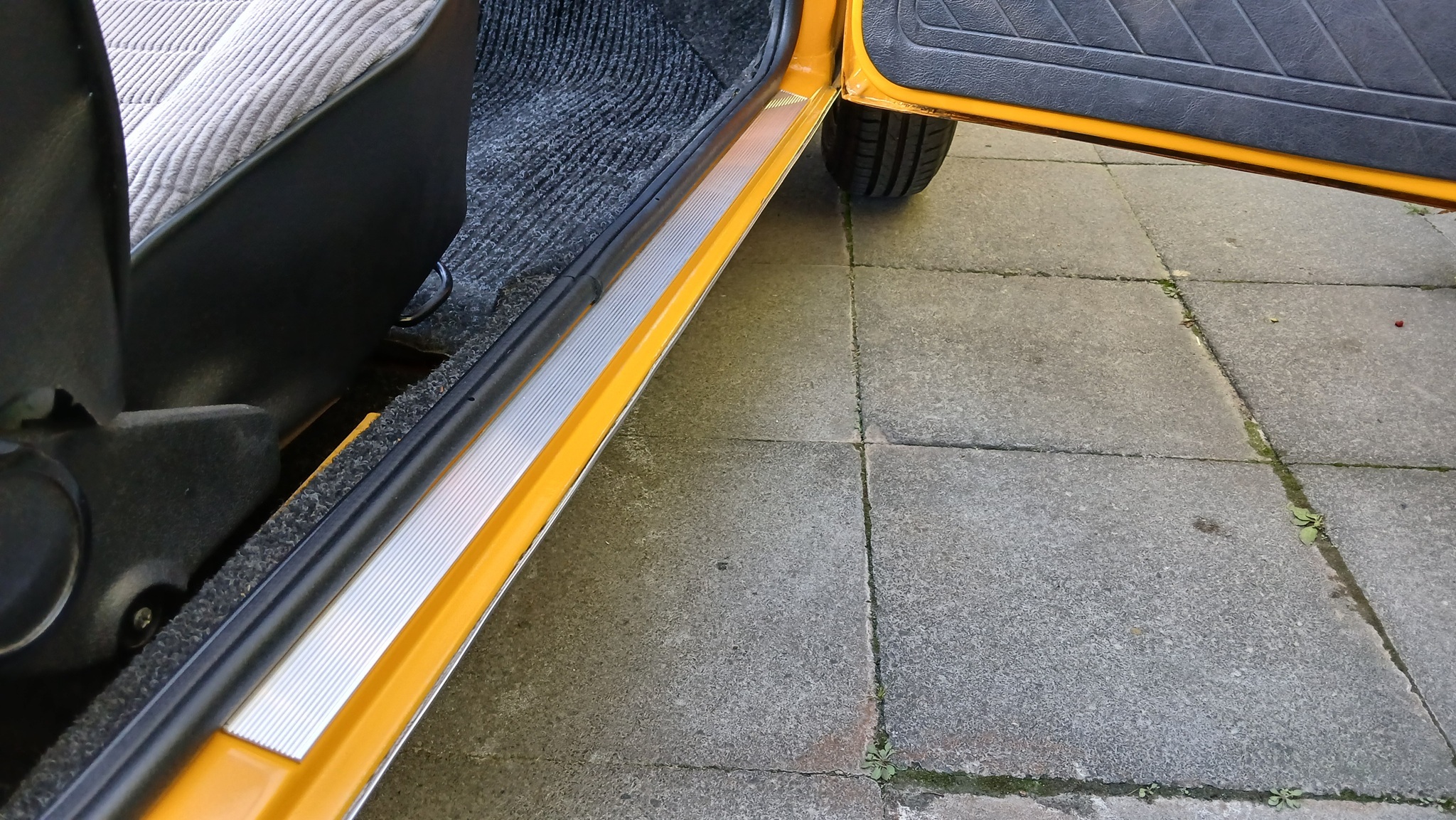 Dem Audi 50 habe ich Einstiegleisten aus Aluminium verpasst. Die Idee habe ich von einem Audi 50 - Mitstreiter bekommen. Diese Option war tatsächlich damals bestellbar. Ich wusste dies, aber habe mich nicht wirklich damit beschäftigt. Ich wusste auch, das die Einstiege eine Vertiefung eingeprägt haben, wo die 30mm breiten Leisten damals eingelegt und verschraubt wurden.
