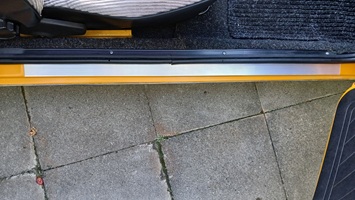 Ich klebte die Leisten mit einem starken adhesiven Doppelklebeband auf die Einstiege, welches nur eine Stärke von 1 mm hat, um die Leiste nicht zu sehr erhöht zu verkleben.