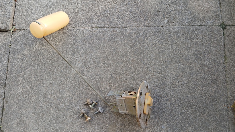 Der ausgebaute Tankgeber ist von VDO. Es ist mit Sicherheit noch der originale und ich gehe davon aus, das er auch noch tadellos funktioniert und die Benzinuhr später richtig anzeigen wird. Es ist aufjedenfall einen Versuch wert, den Geber wiederzuverwenden.