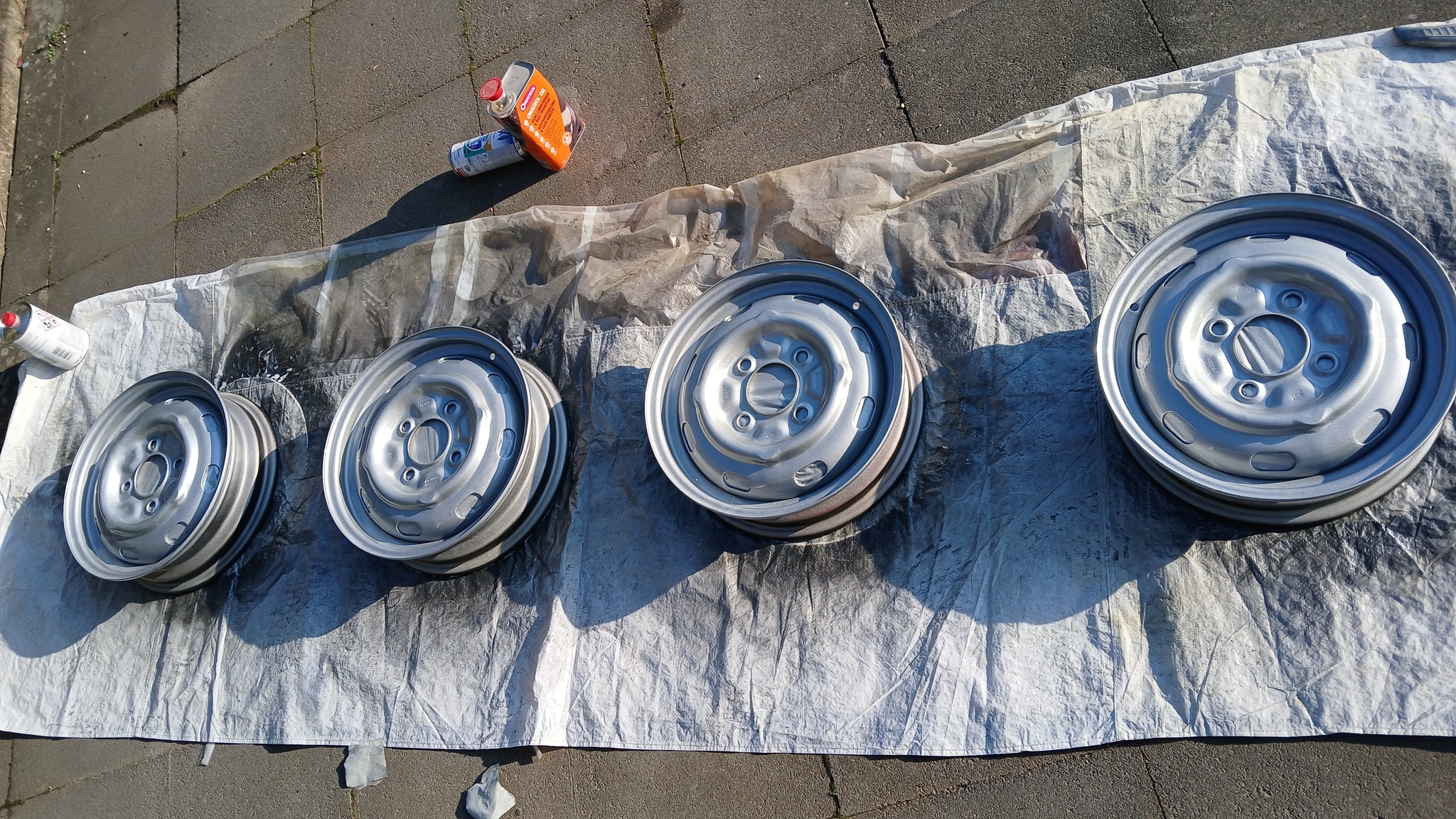 Hier nun die Fotos von der Fertigstellung der Felgen mit 2K-Silberlack: