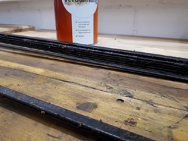Heute, am 12.01.2020, kümmerte ich mich um die beiden Federpakete der Vorderachse. Eine richtig schöne schmierige Arbeit. Die einzelnen Federstahlstreifen müssen geordnet übereinander gestapelt werden, so dass der Querschnitt eine Art “Rautenform” ergibt. Dabei ist auch darauf zu achten, dass die Kegelsenkungen (jeweils rechts und links am Federpaket gegenüberliegend) und (eine Kegelsenkung mittig) eine runde Form aus den einzelnen Elementen ergibt. In diese Versenkungen werden später die “Madenschrauben” bzw. Bolzen fixiert, die unten konisch sind. Dadurch kann sich das obere und untere Federpaket in seinem jeweiligen Achsrohr nicht mehr verdrehen.