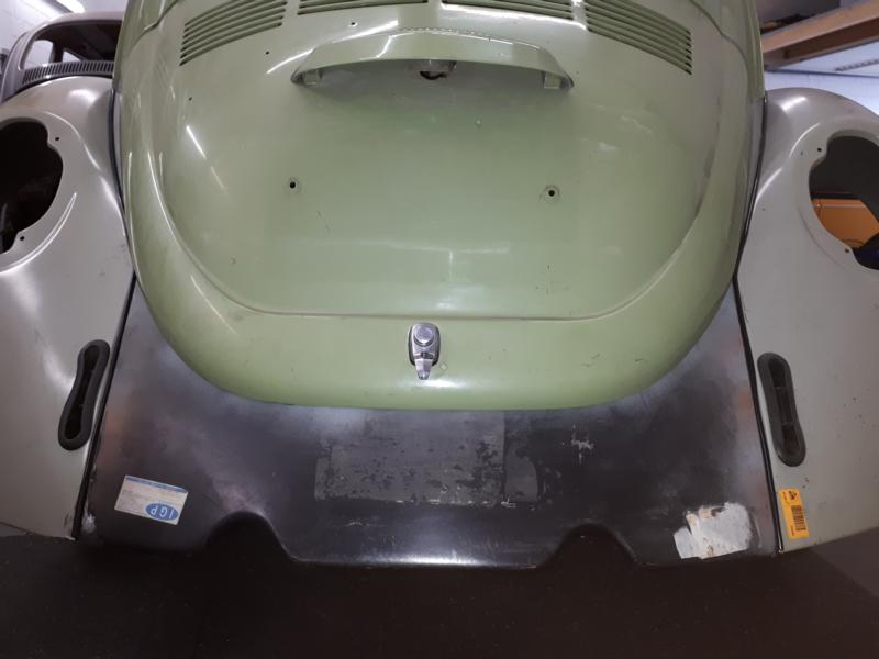 Danach erfolgt die Bestellung neuer (originaler) Trittbretter und schwarzem Kederband für die Kotflügel. Auch die Kofferraumklappe und der Motordeckel werden montiert. Erst wenn alles passt, werde ich mich an die Feinarbeiten der Karosserie begeben.