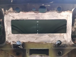 Als nächstes widmete ich mich dem Radioschacht. Dieser war von irgendeinem Vorbesitzer katastrophal ausgeschnitten worden, um ein grösseres DIN-Radio einbauen zu können. Natürlich wird zurückgerüstet auf die alte Radio-DIN-Grösse. Dafür bestellte ich mir ein exaktes Einschweissblech. Das Blech wurde sauber angepasst und die Schweissnaht mit der Schruppscheibe geglättet. Danach wurde die Naht noch verzinnt.