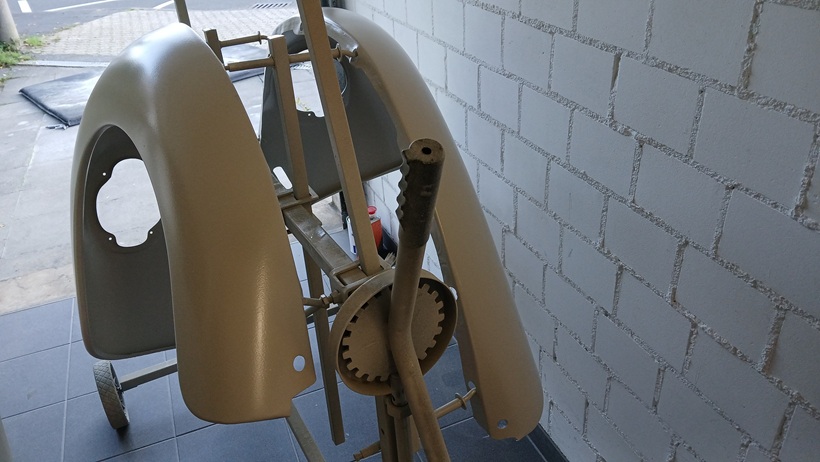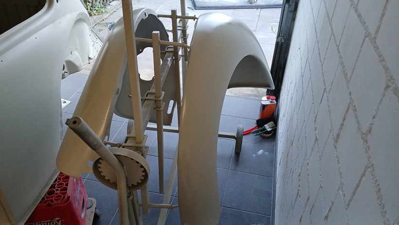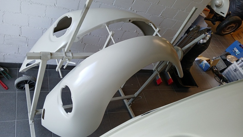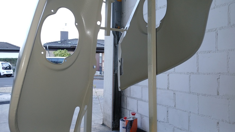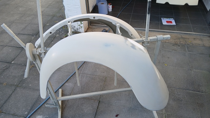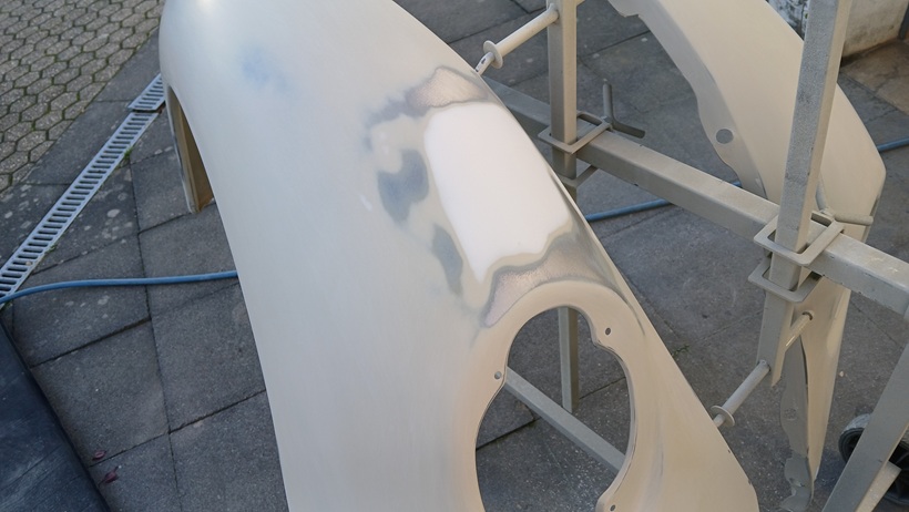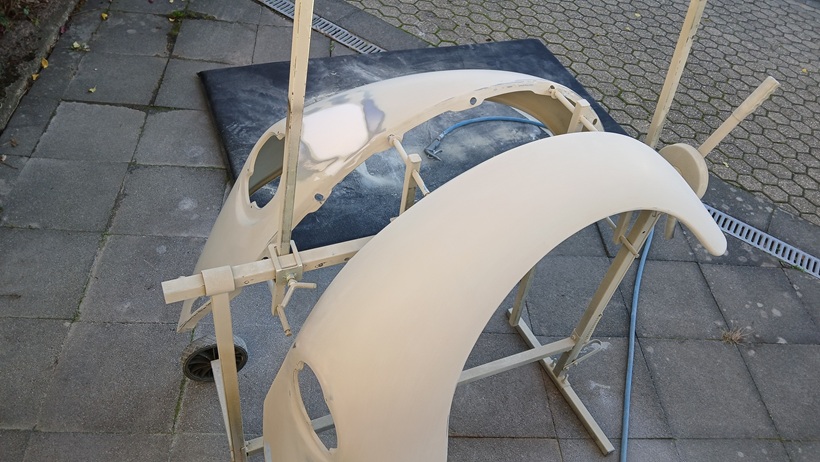 Beide Kotflügel konnten dann mit dem Kompressor grundiert werden.
