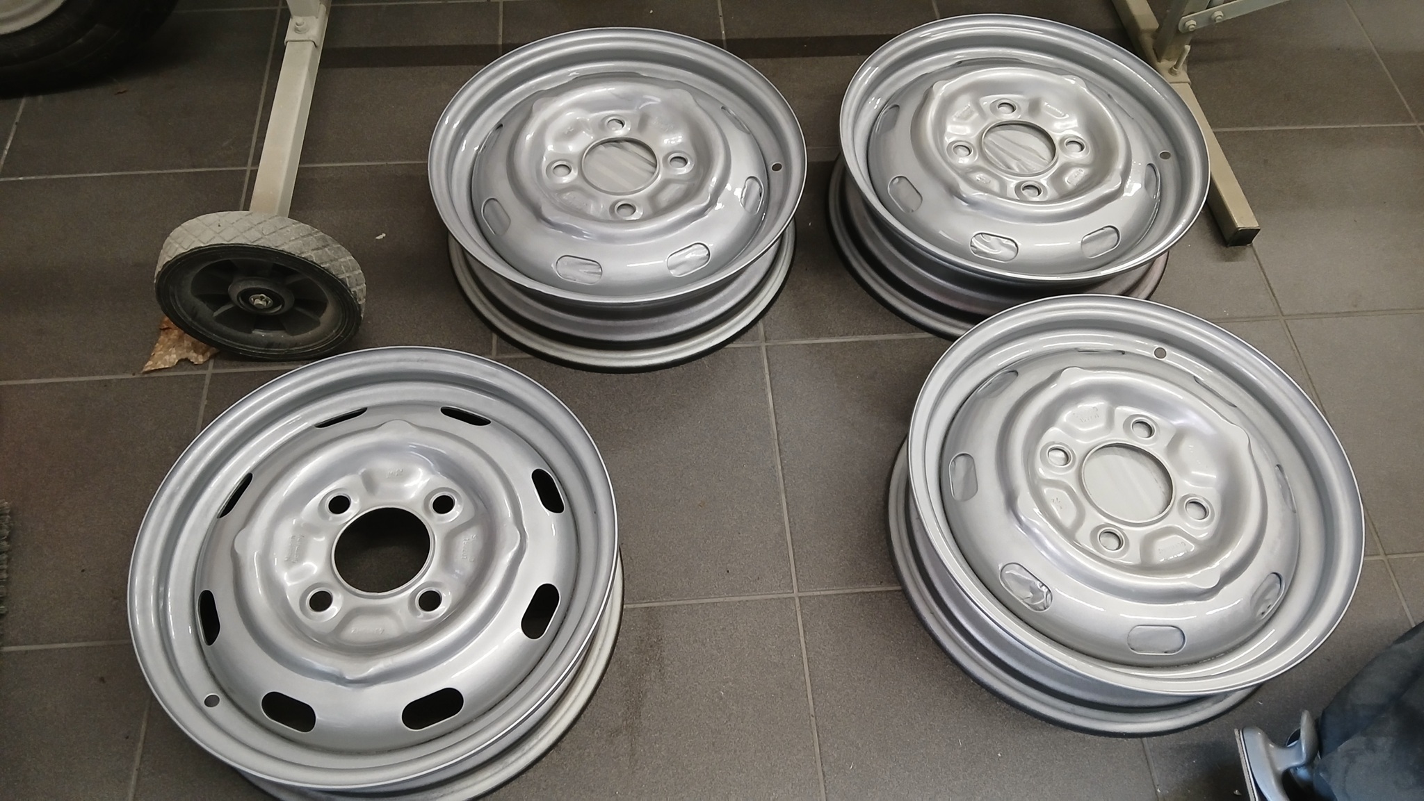 Hier nun die Fotos von der Fertigstellung der Felgen mit 2K-Silberlack: