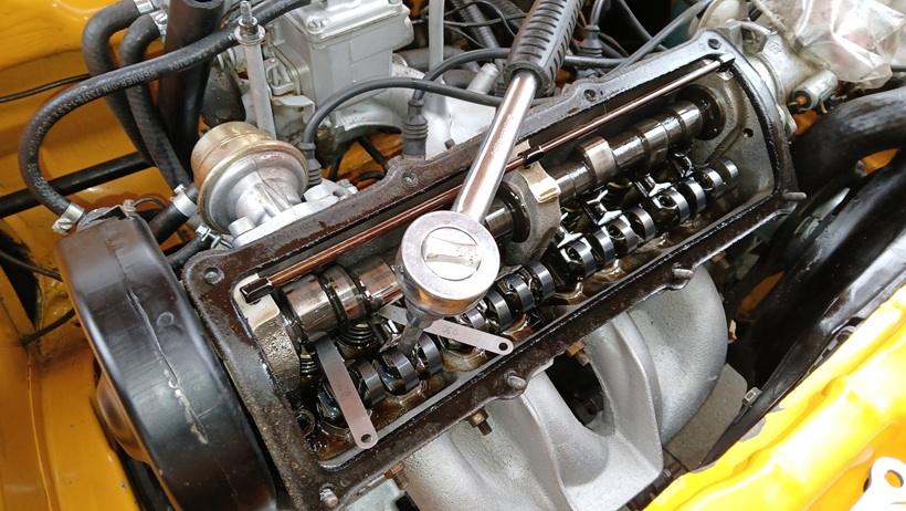 Es folgt das Einstellen des Ventilspiels. Jeweils mit Fühllehren für die Einlass- und Auslassventile. Die Einstellung kann bei kaltem oder betriebswarmem Motor erfolgen. Allerdings sind dann auch die richtigen Fühllehren zu verwenden beim jeweiligen Betriebszustand.