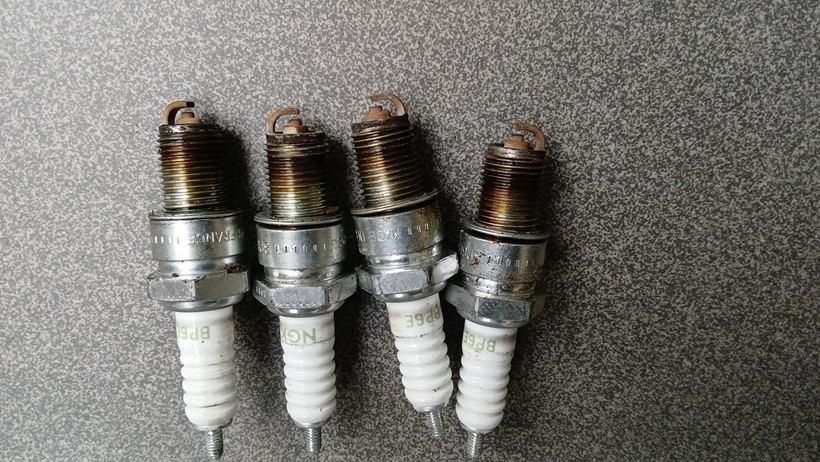 Vor 4 Jahren (als der Motor noch nicht komplett überholt war) waren die Zündkerzen immer ölig und versifft. Man sieht also, das die Motorüberholung einiges gebracht hat. Der Motor ist kerngesund. Aber nach 20.000km sind jetzt neue Zündkerzen drin, denn Zündkerzen unterliegen auch einem Verschleiss und ich will weiterhin eine optimale Verbrennung des Kraftstoff-/Luftgemischs auf allen 4 Zylindern.