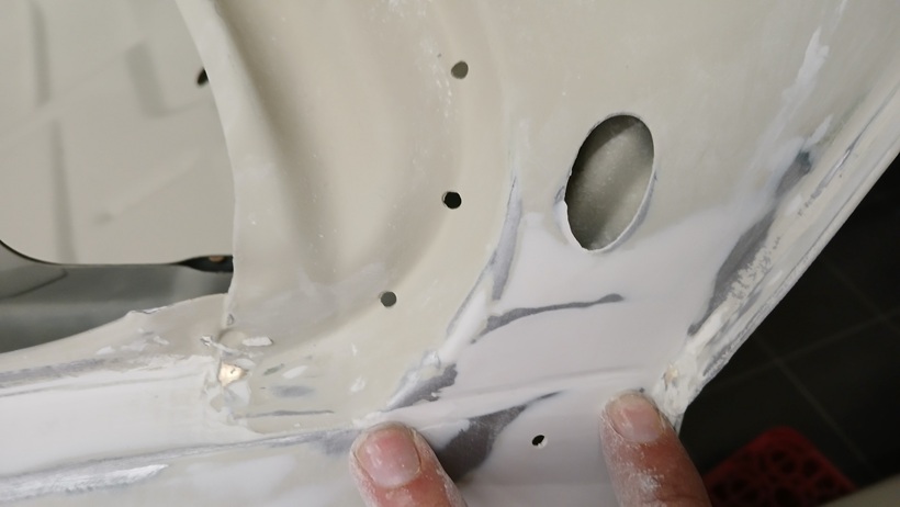 Auch die Konturlinie unterhalb des Antennenbohrlochs wurde wieder eingeschliffen.