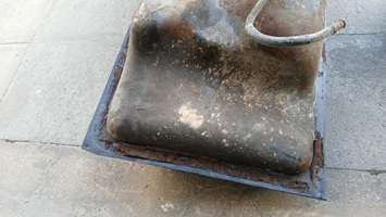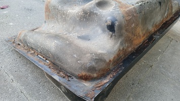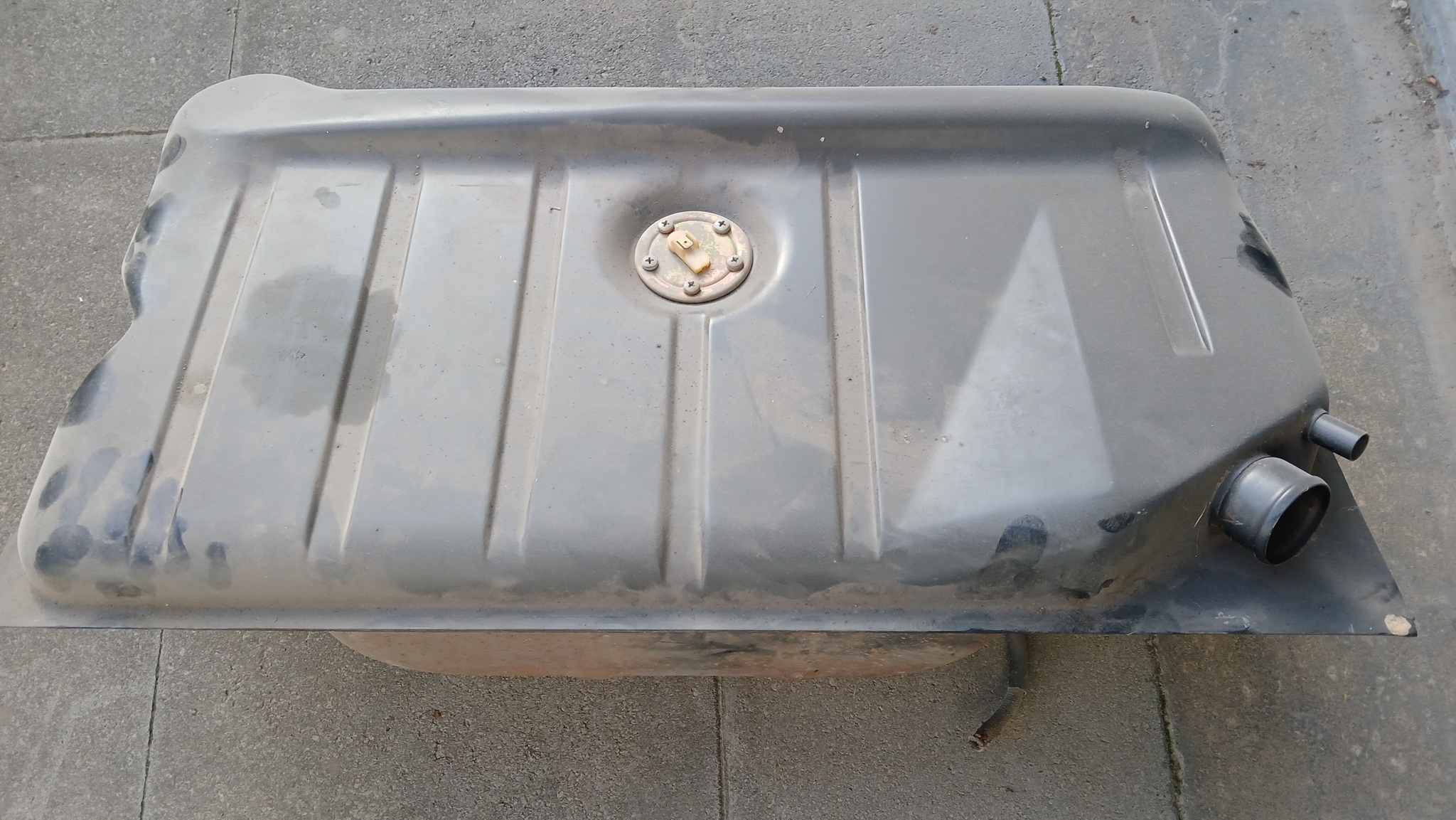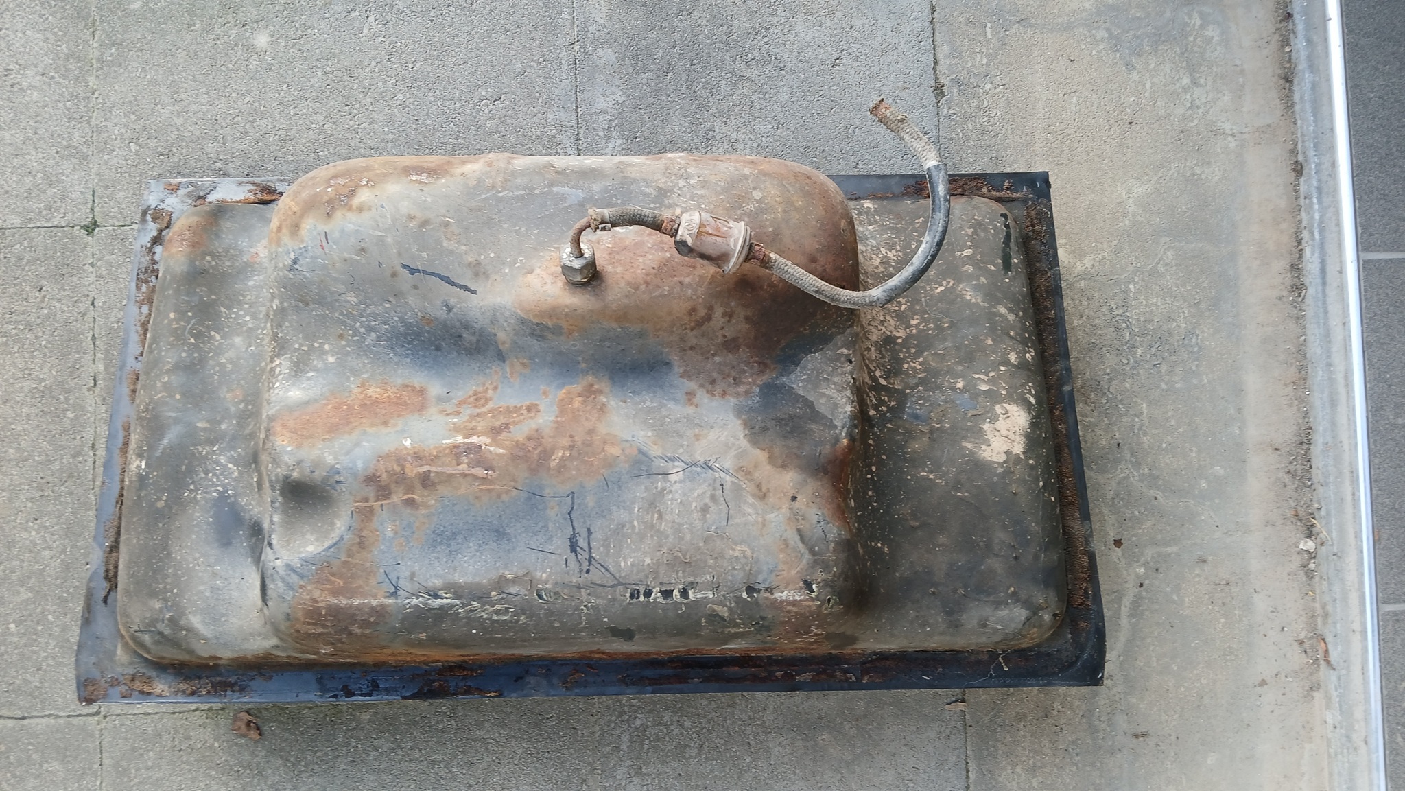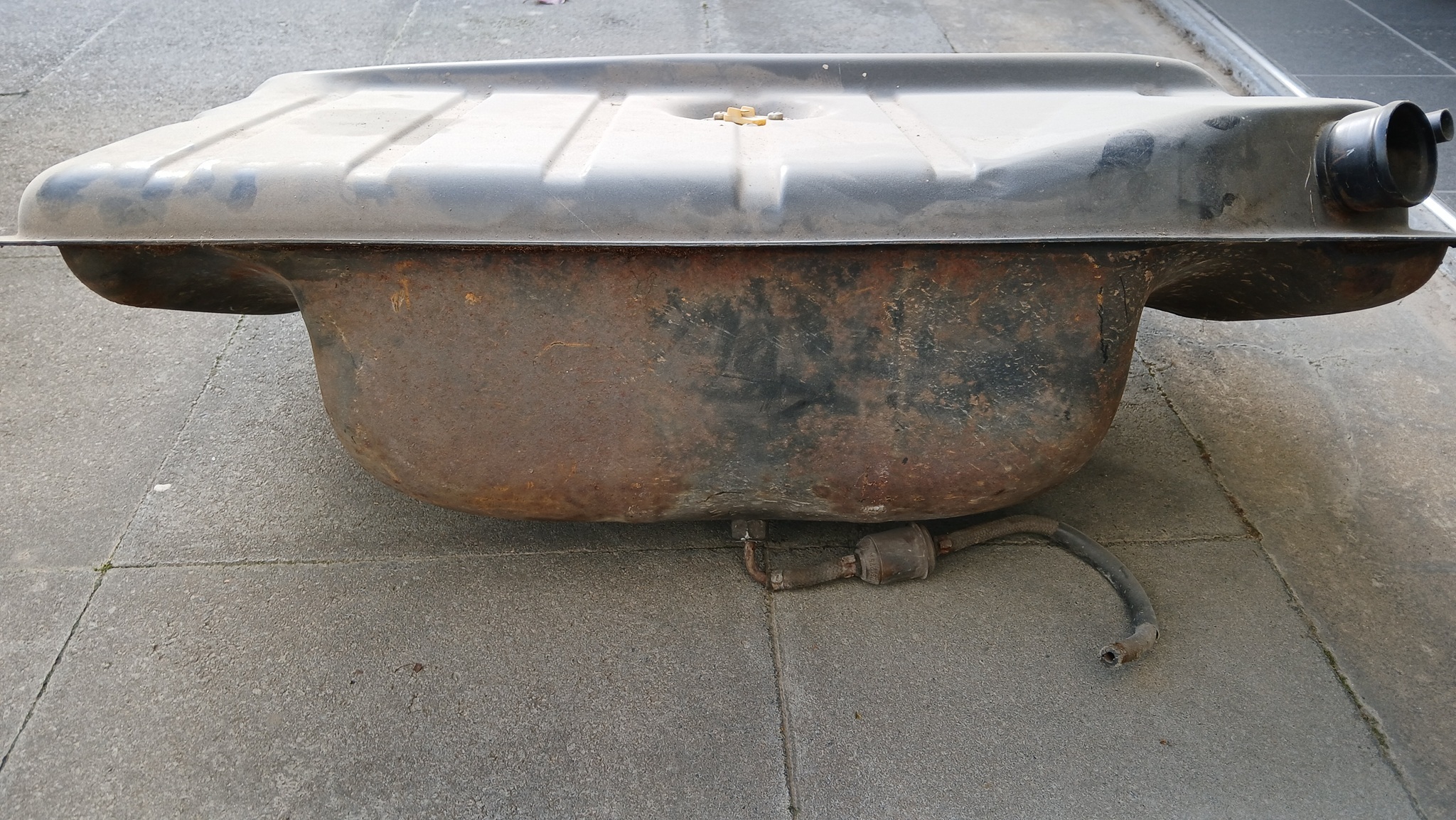 Hier mal die Fotos vom jetzigen (noch unrestaurierten) Zustand des Benzintanks: