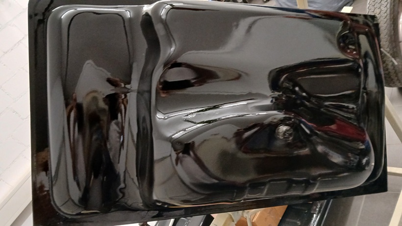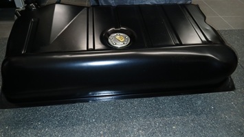 Danach wurde alles abgereinigt mit Silikonentferner und der Tank schwarz seidenmatt lackiert. Zunächst sieht die Farbe hochglänzend aus. Aber nach dem Trocknungsvorgang sieht der Tank dann sozusagen aus wie ab Werk (wie KTL-Beschichtung) und die leichte Mattierung kommt dann erst zum Vorschein. Es handelt sich um einen hochwertigen Sprühlack aus der Spraydose mit integrierter Härterpatrone. Diese muss vor dem Lackieren aktiviert werden und dann wird die Spraydose kräftig geschüttelt. Dieser 2-Komponentenlack hat wie immer den Vorteil, das er wischfest, ölbeständig und kraftstoffbeständig ist, im Gegensatz zu billigen 1-Komponenten-Produkten, die nur mit der Luft trocknen. Deshalb habe ich bisher am Käfer auch nur 2-Komponenten-Produkte verwendet.