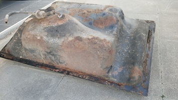 Die ganze Hälfte und auch die Kanten sind komplett entrostet.