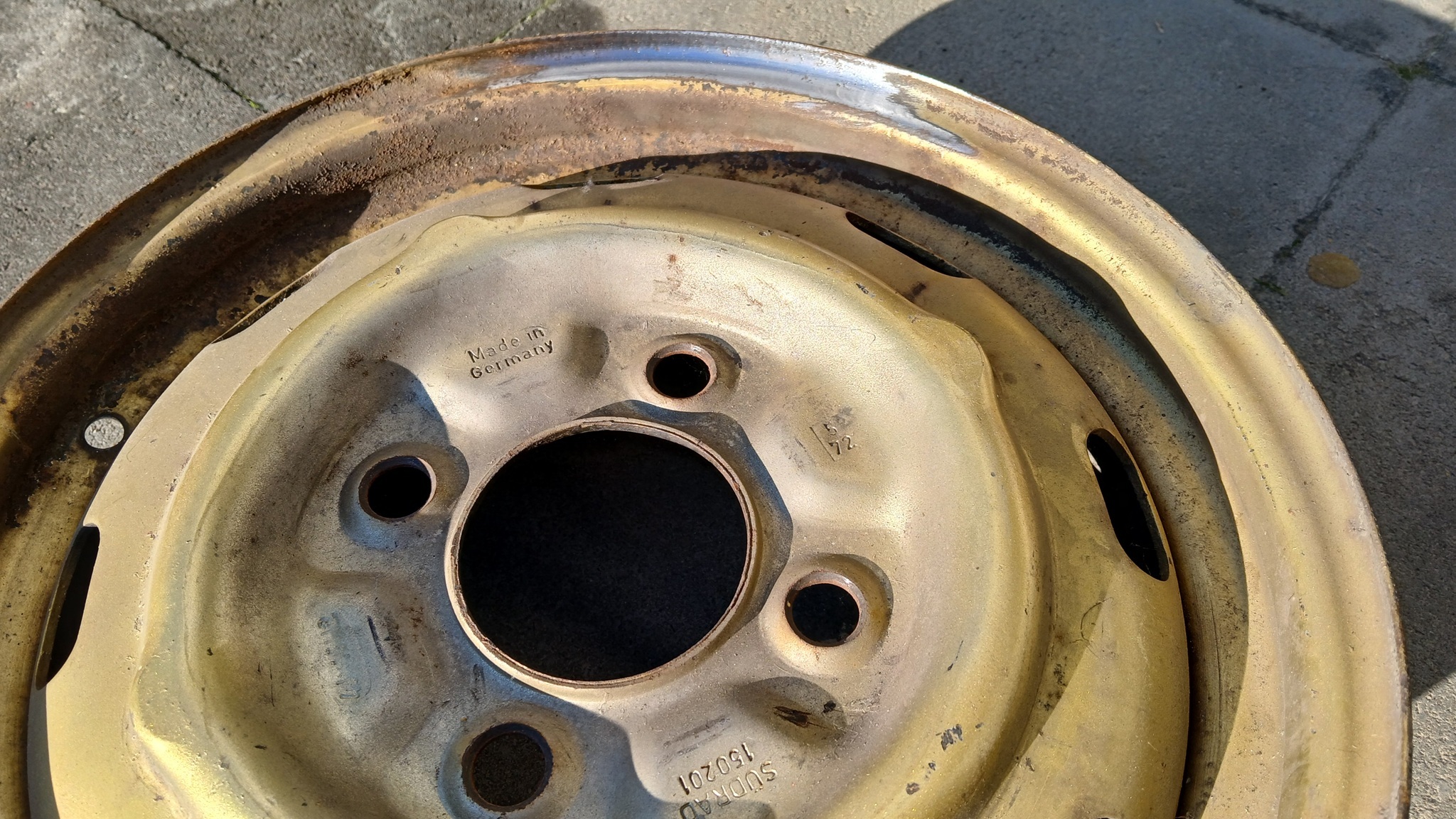Das wird aber alles entfernt. Dieser Felgensatz wurde einst in Ebersbach bei der Fa. SÜDRAD gefertigt. Eine Firma, die es leider schon nicht mehr gibt...