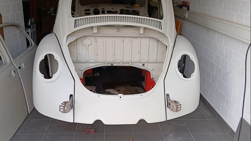 Heute, am 23.03.26 ging es mit der Anpassung des Heckbereichs weiter. Die hinteren Kotflügel wurden mit Kedern angeschraubt. Ich wollte die Stossstangenhalter hinten rechts und links anpassen und dafür müssen die Kotflügel montiert sein.